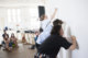 The Alphabet of Fame. Nuray Demir (Vordergrund) und Anwesende beim Schreiben