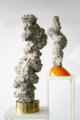 Nach chinesischer Vorstellung werden nicht nur Lebewesen und Pflanzen, sondern auch Steine, Berge, Wasser und Luft von einer vitalen Lebenskraft durchströmt. Steine formen in diesem Verständnis einen lebendigen, tragenden Teil der Erde, und in den Formen und Furchen der zumeist auf Sockeln oder Schalen präsentierten Gelehrtensteine lassen sich Prinzipien von Natur und Kosmos lesen.11Zu diesem außerhalb Asiens wenig erforschten Thema vgl. aktuell Harris, Paul A. und Turner, Richard: „Viewing Stones. A Virtual Exhibition“, in: SubStance 47 (2018), Nr. 2, S. 68. Harris und Turner verorten die Tradition der Gelehrtensteine im weiten Feld der „geo-affection“, der liebevollen Auseinandersetzung mit Steinen, vgl. ebd., S. 68. Eine schöne virtuelle Ausstellung zu diesem Thema bieten ebenfalls Harris und Turner, vgl. http://substancejournal.sites.lmu.edu/home/viewing-stones-exhibition (letzter Zugriff am 20.6.2019). Umgedeutet in Kunstwerke haben sie im 20. Jahrhundert auch ihren Weg in europäische und amerikanische Museen und Sammlungen gefunden.22Vgl. Lutz, Albert: „Durch den Stein ins Paradies. Geschichten und Notizen zu chinesischen Gelehrtensteinen“, in: Ursprung, Philip (Hg.): Herzog und de Meuron. Naturgeschichte, Zürich 2005. Allerdings wird auch außerhalb Ostasiens, insbesondere in den USA, die Praxis der „Asian stone appreciation“ betrieben, vgl. die Arbeit der Viewing Stone Association of North America, http://www.vsana.org/ (letzter Zugriff am 20.6.2019). Obwohl Gelehrtensteine wirken, als hätten ihnen allein Erosionen oder andere geodynamische Prozesse ihre Gestalt gegeben, wurde auch mit Sägen, Bohrern und Meißeln nachgeholfen, um die Steine in die gewünschte Form zu bringen. Die vermeintlich vollendete Natur ist durch Verfahren der Auswahl, Standardisierung und Bearbeitung menschengemacht.33Harris und Turner prägen für diese Modifikationen, die aus der mineralischen Materie zugleich ein Kultur- und Handelsgut (commodity) machen, den Begriff der co-modification, vgl. Turner, Richard und Harris, Paul A.: „CO-MODIFIED. Rocks on Vinyl. Nine Studies in GeoMedia“, in: SubStance 47 (2018), Nr. 2, S. 69–70. Die Tradition der Gelehrtensteine bildet den formalen Ausgangspunkt der Arbeit von Su-Ran Sichling. Ihre Arbeit besteht aus großen, scheinbar natürlich gewachsenen mineralischen Strukturen. Die Formen sind aus Waschbeton und Terrazzo gearbeitet, für die Sockel finden Holz und Messing, schwarzer Gummi und orangefarbener Lack Verwendung.